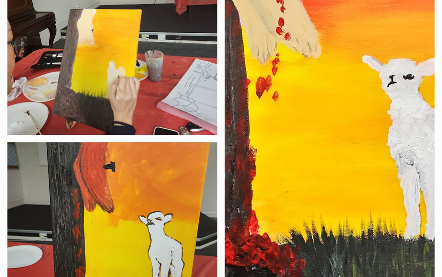 Painted in layered acrylics on A3 watercolour paper, the glowing sky speaks of love poured out without restraint, while the rough wood of the cross contrasts with the lamb’s softness. The lamb does not strive or question. It simply looks up and receives. This is not a theological argument, but a heart confession. Grace made personal.