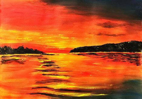 The painting honours the simplicity and power of God’s creation, echoing the beauty of Psalm 113:3 — “From the rising of the sun to its setting, the name of the Lord is to be praised.” It’s a piece for the soul: calming, fiery, and full of promise.