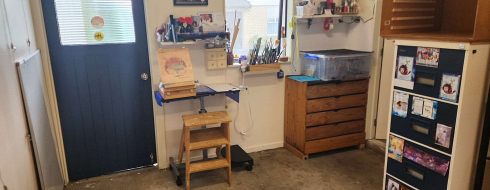 This was another one of those unproductive weeks in the painting arena When I got into the studio on Tuesday to go do a pour, I found my floors were wet & had to lift all the floor mats just to find the cement was soaked due to the heavy rain we've had.