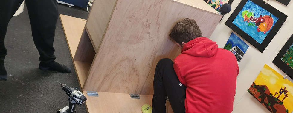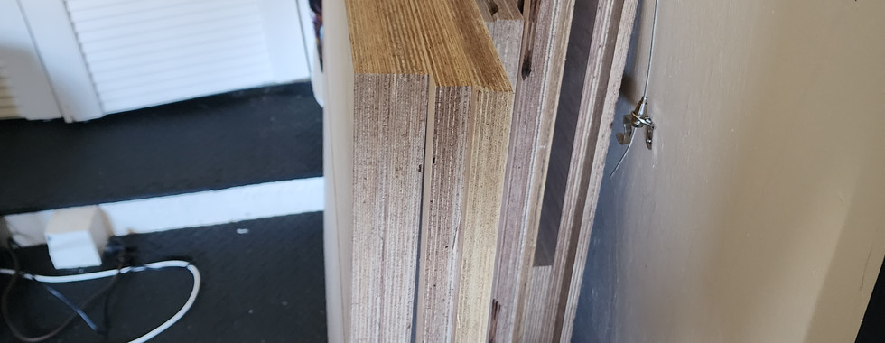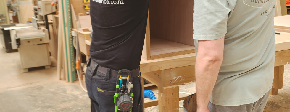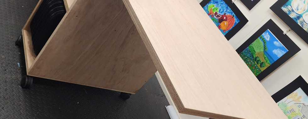 I've been having issues with backache lately when working on my tressle table, so we spent Sunday morning at Jesse's workplace to help him complete stage 1 of my new studio counter/table/storage cabinet.