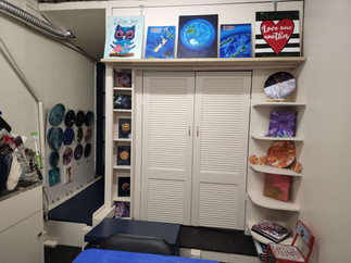 Now we can host paint parties & exhibitions right here in my studio... I just need to add an exhibition hanging system to the exhibition wall...