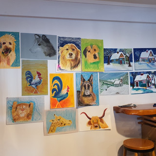 Another messy pastel session. This week we did pets. I failed dismally at the lion & created a monster. Second attempt at rooster turned out so much better. I'm learning to embrace my failures & also learned that the pastels they use in class are much easier to work with than the ones I have at home.