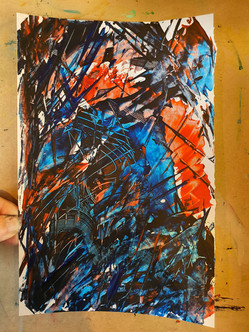 This week we learnt how to do an abstract painting with acrylics. I'm not so sure about this but I kind of like the unintentional abstracts happening on the palette.