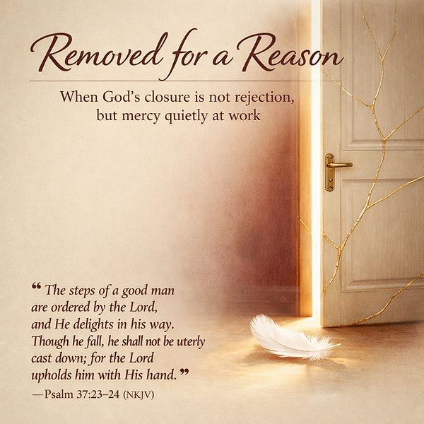 So if you were taken out of a place, a relationship, or a season you begged to remain in, trust this: He had a reason. What felt like loss was mercy in disguise. One day, with healed eyes and a steadier heart, you will thank God for the removal that saved you.